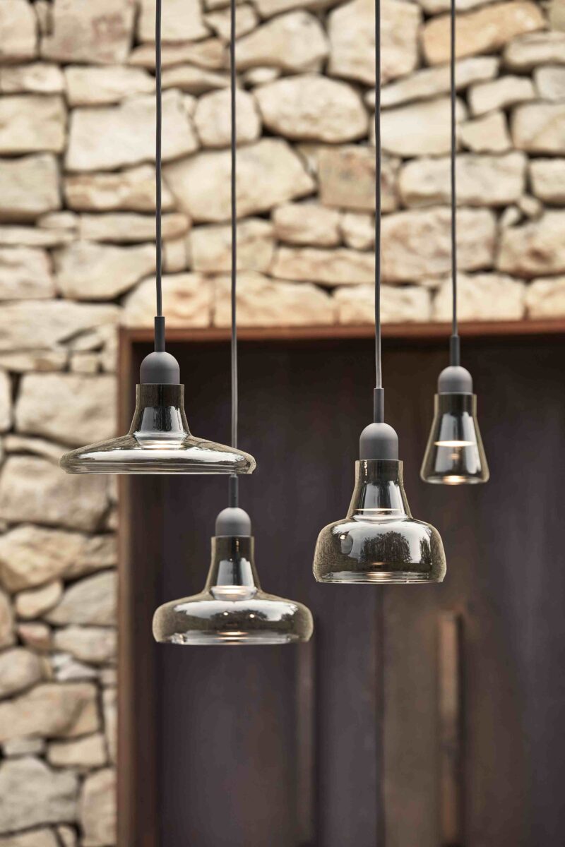Finisaje: sticlă suflată manual cu opțiuni variate de nuanță / corp dural finisat rezistent la exterior