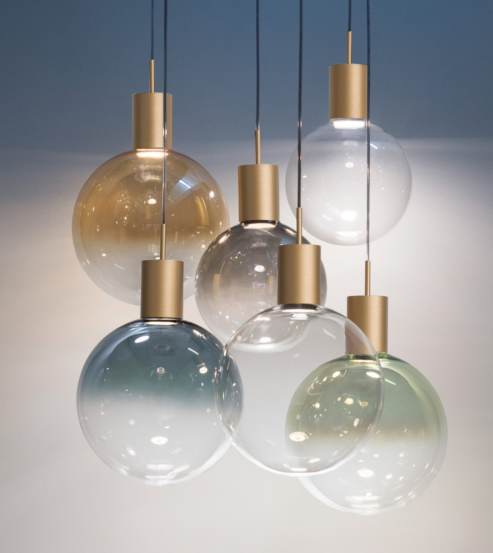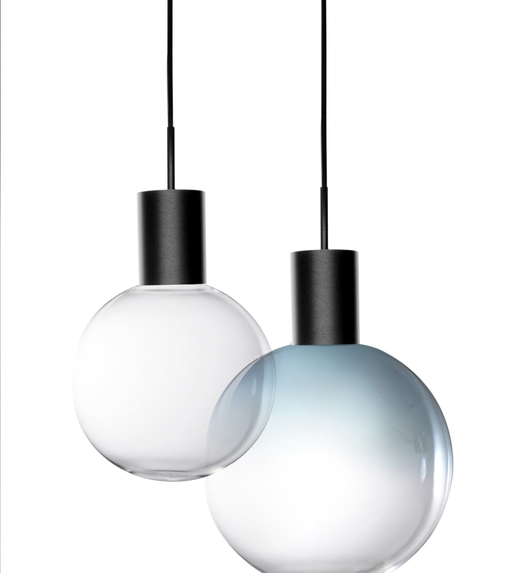 Realizată din sticlă borosilicată decorată, colecția oferă sfere în două dimensiuni (Ø 20 cm și Ø 25 cm), disponibile în nuanțe captivante – albastru, gri fumuriu, chihlimbar și transparent. Degradeurile cromatice sporesc farmecul eteric al designului, transformând fiecare piesă într-un spectacol vizual elegant.