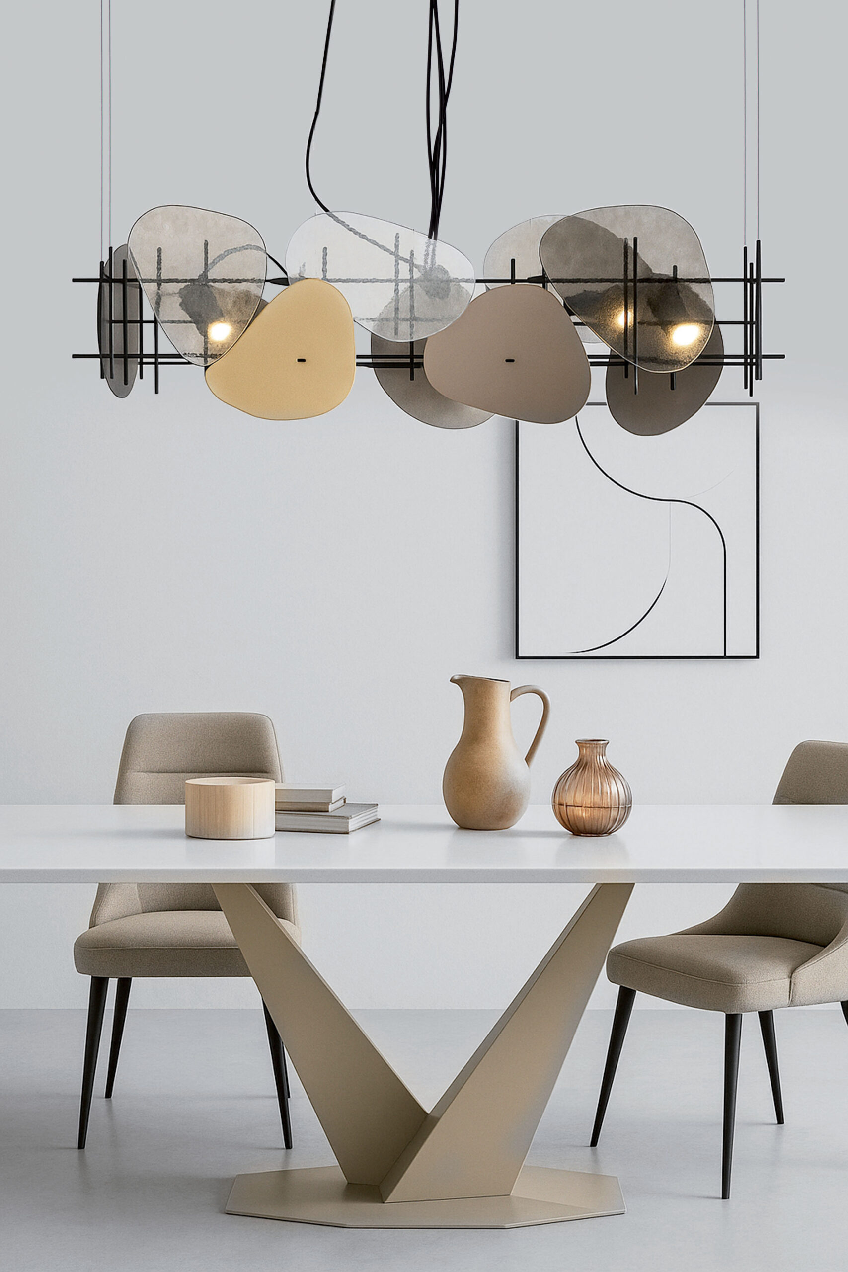 Corpurile din colecția Camouflage sunt formate dintr-o structură de tip „cușcă” metalică, care susține cadre decorative şi sursa de iluminat. Ecranele decorative vin în şase variante distincte, dintre care unele sunt metalice, altele din sticlă. În interiorul cuștii pot fi montate spoturi GU10 amplasabile și orientabile după dorinţă.