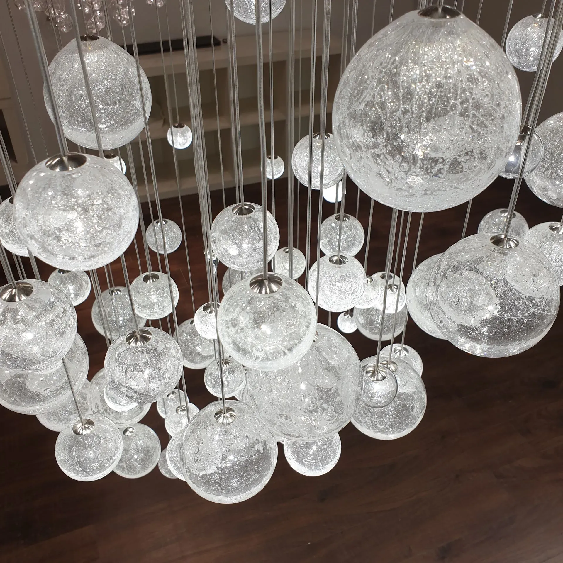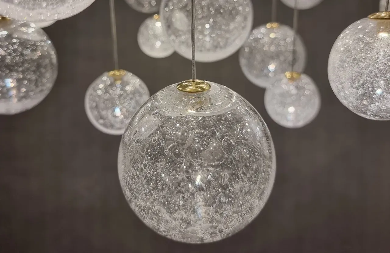 ELUDA este un candelabru modern cu module LED integrate şi corpuri de sticlă Boemă (sodă), realizate manual, care combină eleganța texturală cu tehnologia avansată. Fiecare piesă de sticlă are propriul modul LED pe 24 V DC, ceea ce oferă posibilitatea de dimming individual, efecte pulsatice sau control dinamic — ideal pentru spații comerciale, holuri sau interioare cu tavan înalt.