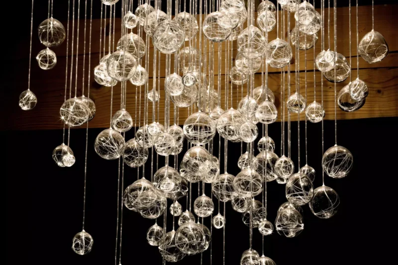 Materiale: sticlă suflată manual + fibre optice + structură metalică