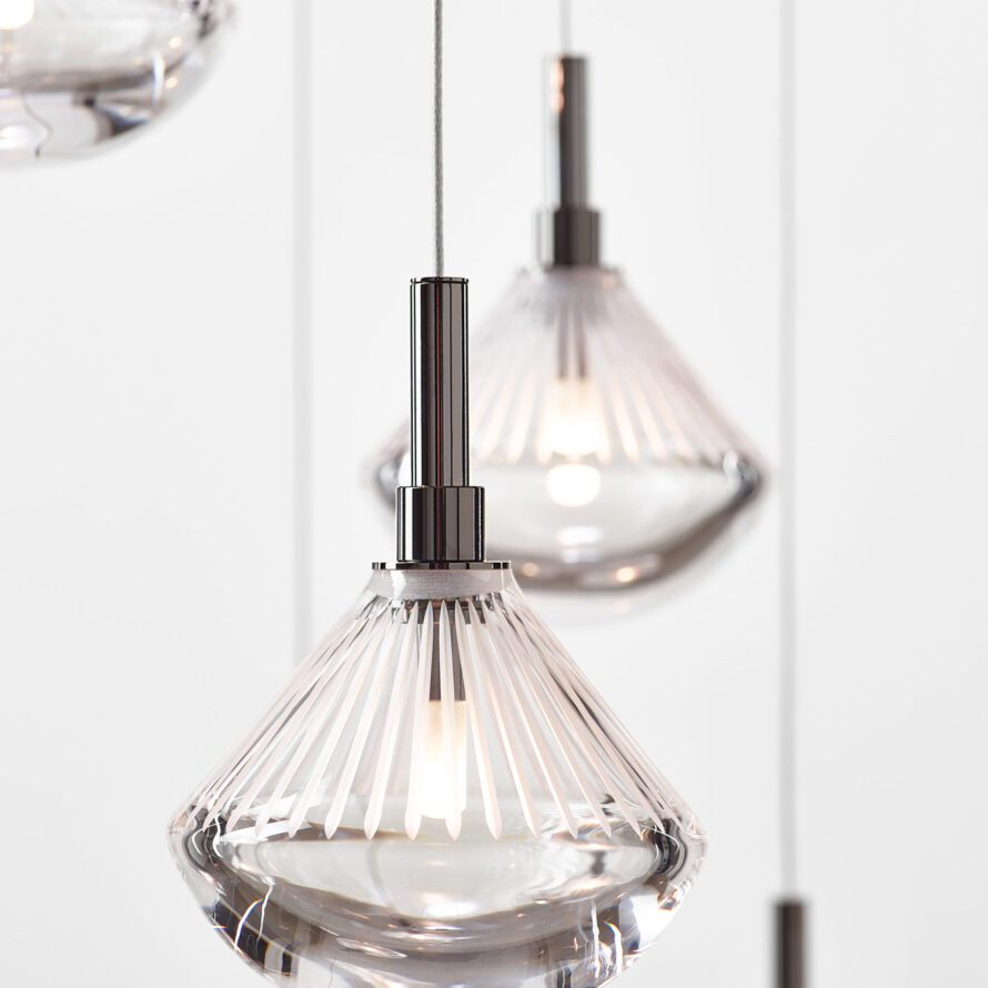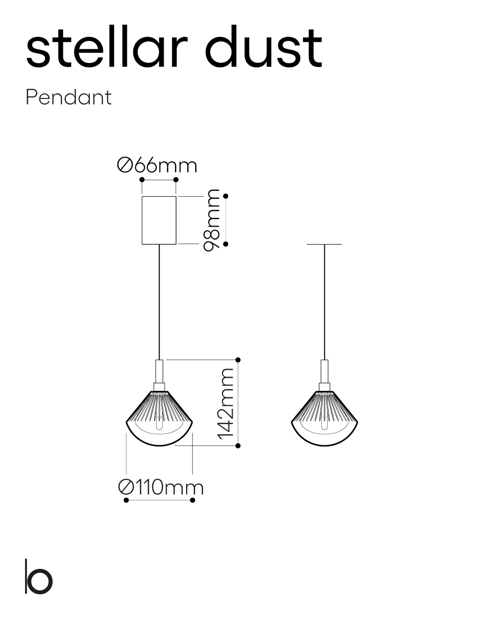 Lampa suspendată Stellar Dust, realizată din sticlă cristal clară fără plumb și finisaje aurite suflate, rezonează prin delicatete și rafinament. Fiecare piesă este suflată manual și finisată cu tăieturi precise, făcând din această lampă un obiect de artă luminoasă care captează și amplifică lumina în spațiu.